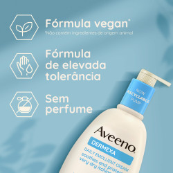 Aveeno Dermexa Crema emoliente é una crema hidratante y calmante, para el cuidado de la piel seca, con tendencia a atópica y con picazón. Hecha a base de ingredientes hidratantes, anti-irritantes y suavizantes, esta crema hidrata intensamente la piel durante 24 horas, aliviando la sequedad y la picazón, al mismo tiempo que refuerza su barrera protectora. La piel queda profundamente hidratada, calmada y suave.