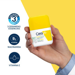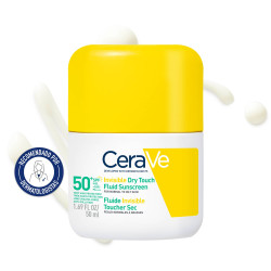 O protetor solar CeraVe Invisible Dry Touch Fluid oferece uma proteção UVB + UVA muito alta, que vai querer usar durante todo o dia. Desenvolvido com dermatologistas, a sua fórmula contém 3 ceramidas essenciais e niacinamida. Não só protege eficazmente a pele dos raios UV prejudiciais, como também fortalece ativamente a sua barreira natural, proporcionando 12 horas de controlo da oleosidade e do brilho, para uma pele fresca e com acabamento mate durante todo o dia. A sua fórmula leve, respirável e de rápida absorção prepara a pele para a maquilhagem sem provocar borbulhas. Não comedogénico e sem fragrância.